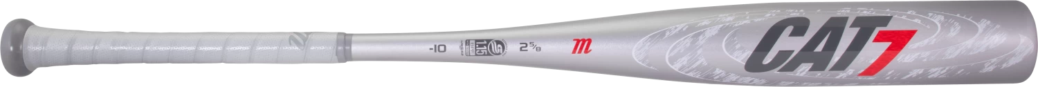 Shine at the plate with the CAT7. The 2020 Marucci CAT7 -10 Senior League Baseball Bat is built to explode with unrelenting fury, now in a new silver color way. The precision-balanced barrel and one-piece alloy design offer a clean, consistent swing to control the wrath of this ultra-responsive rainmaker.