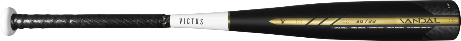 Engineered with an ultra-balanced design and carbon composite barrel-end, this one-piece aluminum hybrid bat boasts faster exit speeds through the zone. The Vandal combines a ringless barrel, made of Multi-Variable walls for a more flexible sweet spot, with a pro-tapered handle and micro-perforated soft-touch grip for the unmatched performance we all expect from a Victus Bat.Â